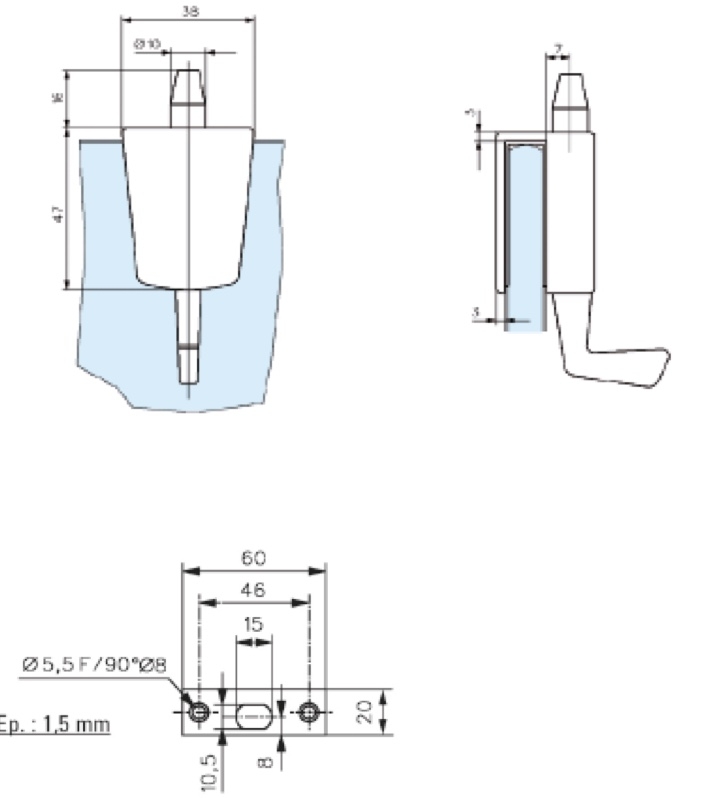 -Loqueteau sans façonnage du verre. Pour verre 8 à 10mm