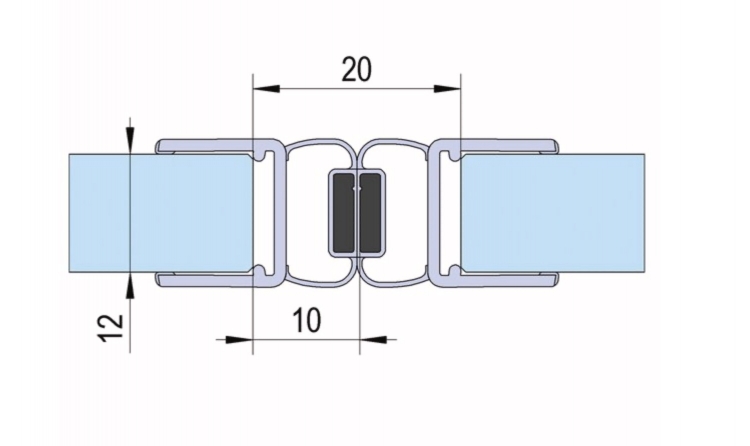 Joint de douche avec aimant 180° pour portes battantes pour verre 10-12mm