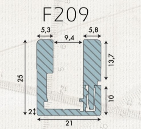 Profil F209 noir laqué 9005 -2 cales + 2 équerres longueur de 3m