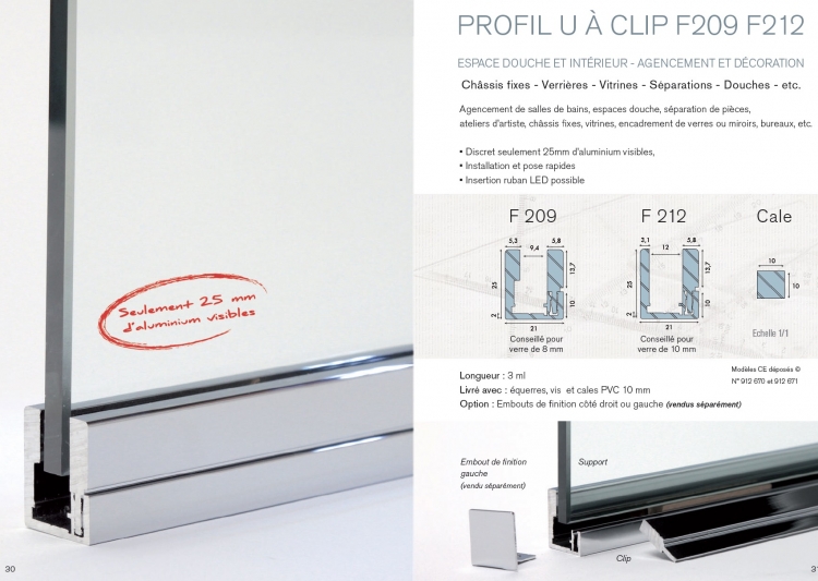 Profils F317, F209 a pareclose, montants décoratifs, méplats, cornières & T… plus de 13 finitions.