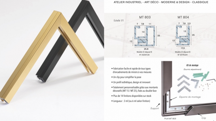 Profil MT 803 à clip spécialement conçu pour les encadrements de miroirs.