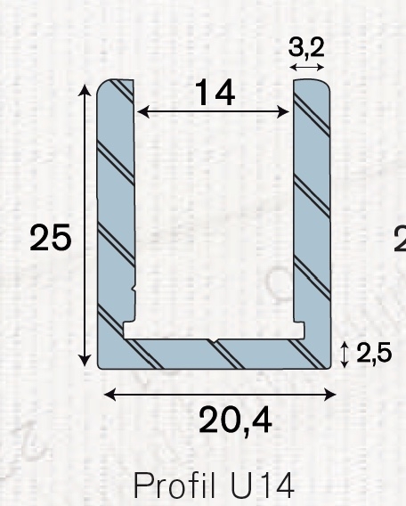 Profil aluminium de 3 mètres de long (a recouper selon besoin). espace intérieur 14mm (idéal pour verre 12mm ou feuilleté 66/2).