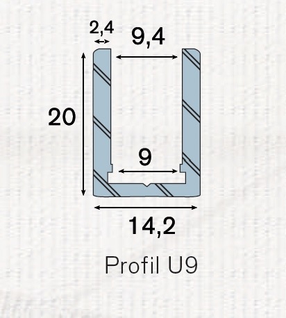 Profil U haute qualité de 20mm de haut x 14,2mm de large et 2,4mm d'épaisseur.