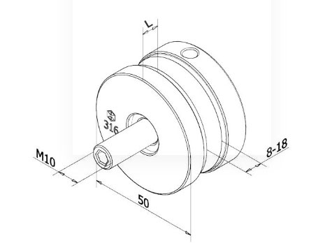 Perçage du verre diamètre (mm): 20mm. Fixation par point Entretoise inox 316 diamètre 50 sur plat L48 pour verre de 8 a 18mm