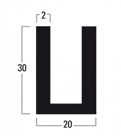 Marque : BOHLE - Profil en U de 30x20mm pour verre de 12 à 15mm. Aspect alu anodisé. Longueur 5000mm. Pour le montage de panneaux de douche, de cloisons fixes en verre. Espace intérieur 16mm, &e ...