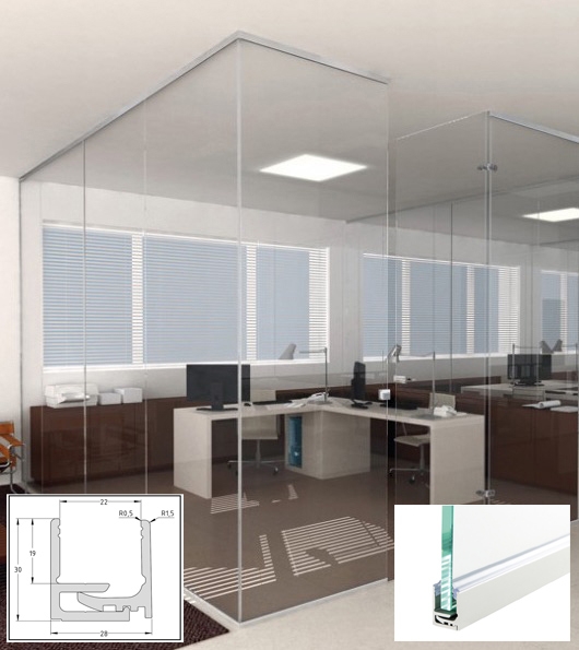 Pour profil aluminum de paroi en verre ref BO5201710 et BO5201712