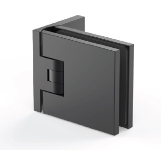 Charnière noire mat black édition mur-verre. Avec façonnage du verre. Pour sécurit 6,8 ou 10mm. Ouverture a 180° (90° de chaque coté). Eloigne le verre du mur de 3mm.