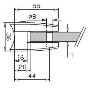 Pince à verre INOX 316 - Brossé GR 320. Matière : Inox 316 - Brossé GR320. T (mm) : 44.2 - Fournie avec une talonnette pour maintenir le verre. La pince à verre : pièce indispensable pour fixer votre verre.