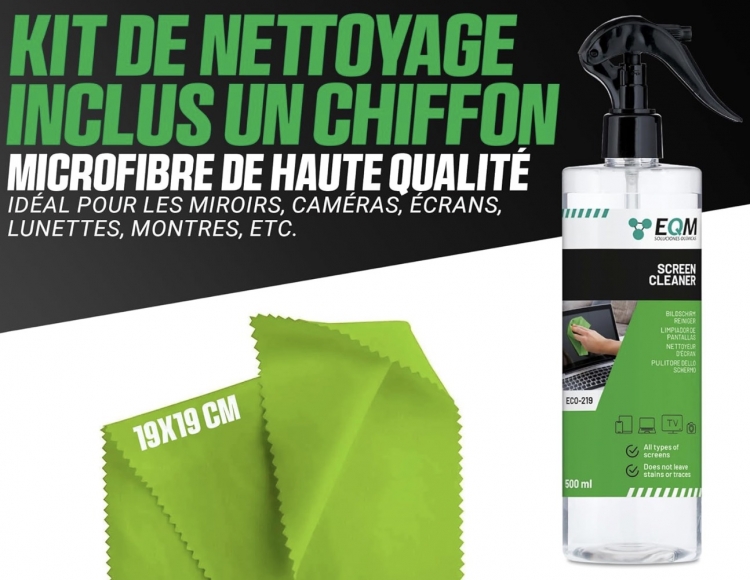 Accueil > Fiche article > Nettoyant pour Miroir TV et écran avec Chiffon Microfibre - 500 ML