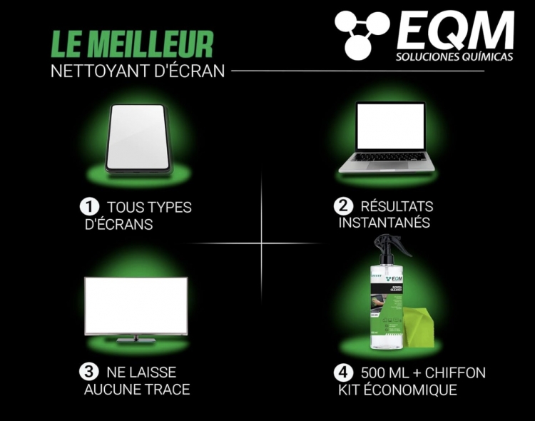 Produit de nettoyage pour Miroir TV et écran, fournit avec Chiffon Microfibre - Bouteille spray 500 ML - Tous Types d'écrans - Tablette, Mobile, Ordinateur Portable, Appareil Photo, LED, OLED.